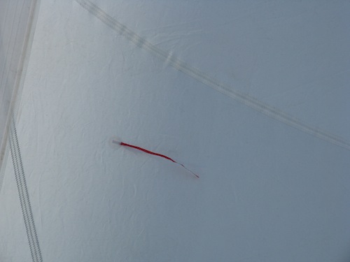 Don’t have telltales on your sails? If you’re a commuter cruiser like us & take your sails off at the end of every season, it’s easy to add telltales — available here from West Marine – they’re little discs with adhesive and lightweight streamers.