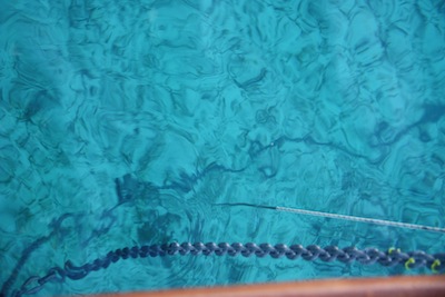 We like to anchor with a minimum of 5:1 scope even with our all chain rode and 30# kellet down – and we really prefer 7:1. And if it’s a wide-open anchorage, we’ve been known to use 10:1 which technically should be reserved for storm anchoring, but sleeping well is worth alot!