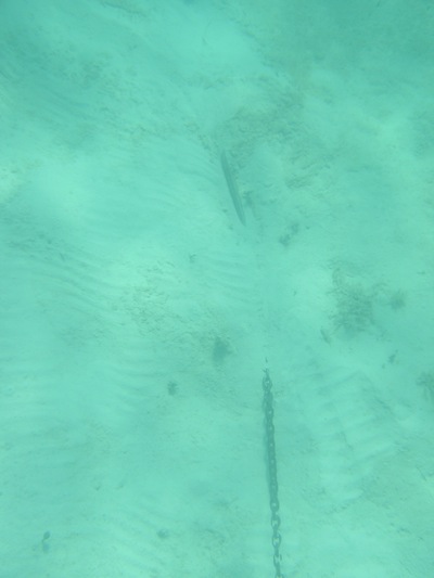 So this time they motored up even closer to our stern and tossed the same anchor over with just a tad more scope. This went on until well after sunset. We’re not sure they ever used much more line, but they finally held well enough that they didn’t drag into us when the wind switched in the middle of the night in an unforecast direction, putting them right in front of us. Good thing I didn’t realize they were right in front of us, I wouldn’t have gotten another wink of sleep!