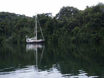 Anchored in the Rio Chagres, Panama along with all the sloths, howler monkeys, spider monkeys, toucans and green parrots!