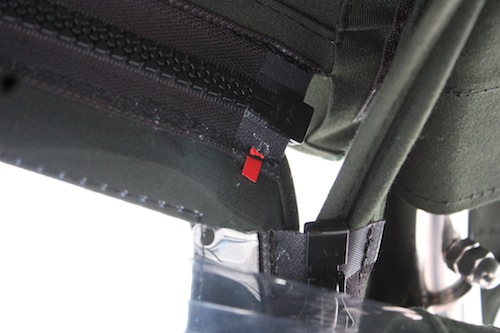 Hi Jesse! Our new side curtains have snaps to hold them down. I’ll try to post some more photos tomorrow morning on commutercruiser. Thx! Jan