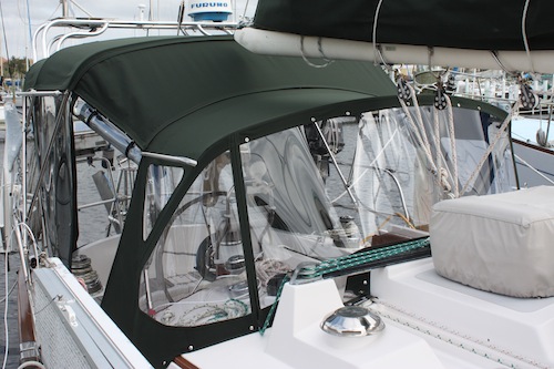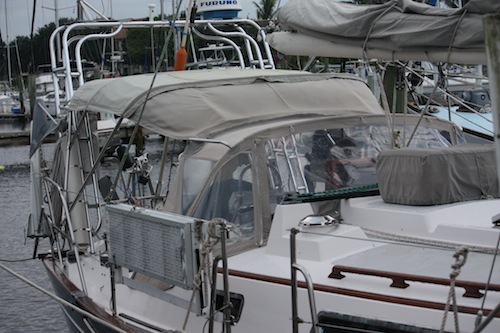 1. What don’t you like about your existing cockpit canvas or enclosure? We didn’t like the fact that ours was too short – David couldn’t stand up straight under the bimini. Neither of us could stand straight when coming up the companionway, we had to duck to clear the dodger. We wanted to raise the dodger 5-6″ and raise the bimini as well.