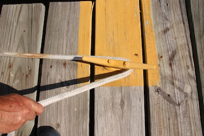 Now comes the tricky part for me — form a loop with the end that you’re going to put over the other end of the cleat — notice that the bottom line of the loop is parallel with the figure 8 already on the cleat.