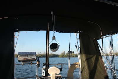 Sometimes you find something new that really does make life easier aboard! We just added a LumiQuest SoLite as our cockpit light after reading a Cruising World review. While reading the review, all I could think about was the number of times I’ve tripped over the cord that runs from our 12V outlet just inside the companionway out to the Davis megalight we’ve used for a cockpit light for years. The Megalight LED version used almost no amps and that made my Amp Ogre husband, David, very happy. I could keep the cockpit light on for hours if I wanted (as long as the bugs stayed away).