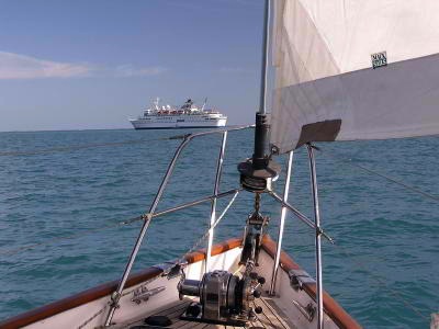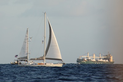 From the time a big ship, tanker, cruise ship, cargo ship or whatever, appears on the horizon, you may have only minutes to figure out your avoidance strategy. Big ships move FAST, sometimes up to 30 knots an hour. From the time you first spot a ship on the horizon, it’s only about 4-5 miles out. We can spot them on radar long before we can actually see them – sometimes up to 16 miles out (mostly because our radar is a 16 mile radar!). But if a ship is cruising at 30 and he’s 15 miles out, that’s only a half hour until he’s on top of your boat — and since it may takes big ships literally miles to change course, you must know what’s up far before he gets closer. Just for fun, here’s some more info on the world’s supertankers if anyone is curious: SUPERTANKERS I’m not sure how up to date it is, but it’s a fun summary.