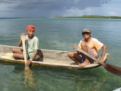 There were two highlights of Caledonia — first, the two boys that were fishing and stopped past daily – sometimes twice a day to practice their English … turns out the older boy, 13, goes to boarding school in Ustupu, a much larger island and he is learning English. Daily he wanted to learn new words … Ingles for “comer” – to eat, ingles for buscar – to look for, on & on. His curiosity was boundless and I wished I had a kids book in English to give him. We took his photo with his brother & went into town the day before we left … Castro acknowledged he knew the boy and wanted me to give him the photo so he could take it to the boy. I persisted and at last Castro had his assistant, Baptista, lead me to the young man’s house. He was very shy greeting us at the fenced opening to his family’s compound of huts and smiled when I gave him the photo but was embarrassed and quickly disappeared into the compound.