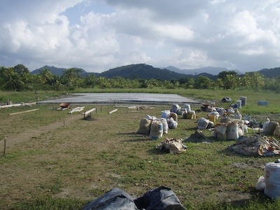 They beach the cayucos and begin hauling HUGE bags of something out of sight down the airstrip. Of course, the next day we investigate. Turns out the airstrip isn’t quite long enough for the Air Panama and Aeroperlas planes that land each morning from Panama City, bringing supplies and the rare tourist. So the Kuna are hauling sand, rocks and concrete to make the runway longer. They’ve started at the far end and there’s a gap between the original concrete runway and the new section about a half football field in length. We are proudly informed that they will have this project completed in 15 days. HUGE project … women, children everyone in the village appears to have been assigned to haul a certain number of 60# bags of sand down to the other end. First though, they have to dig the sand from the beach! There are two crude wheelbarrows, but I guess it’s easier for them to sling their headband bags over their heads & haul. These tiny people must be SO strong, it’s beyond comprehension! Amongst ourselves, we think the water repair would be more beneficial to the village than the runway extension, but they are definitely industrious and hard working!