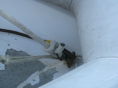 But leaving the dinghy trailing the boat in the water can be inviting opportunity theft. If your dinghy is the easiest to take in any anchorage, you may be the next victim. Make it more difficult by hanging your dinghy. But keep in mind, opportunity thieves are getting more aggressive as cruisers are making it harder to take their dinghies. When we were last in Belize, they would drift up under the dinghy in an outboard launch, cut the bridle lines, dropping the entire dinghy into their larger boat and the first indication cruisers had that anything was amiss was the roar of a large outboard when the launch sped away.