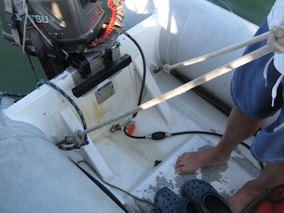 […] you hang your dinghy either from davits or “on the hip” with a halyard, don’t forget to remove the drain plug if there’s a chance of monsoon […]