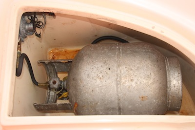For some reason, horizontal propane tanks manufactured before October 1, 1998 are EXEMPT from the OPD valve requirements. Since our tank is a very nice aluminum tank added when the boat was manufactured … that would be 1985 … and it’s a horizontal tank, it’s exempt.