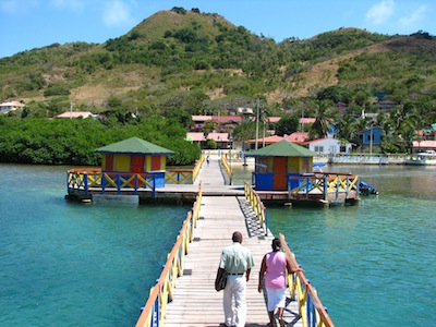 Hi all! Finally, we just checked into our very FIRST South American country earlier today… Providencia is an idyllic mountainous island, right off the Nicaraguan coast, but it’s owned by Colombia. We sailed in here at daybreak today (Thursday) after a 2 night, 2 day sail from the Vivorillos Cays at the Honduras/Nicaraguan border. The entire trip took 39 hours & we were able to sail all but the 12 hours we motorsailed. At times it was a slog into the wind, but mostly it was a close reach, Winterlude flying along and only taking a breather when one of the 6-10 foot rollers would sideswipe us, causing the entire boat to shudder & then build up speed once again. The stars were magnificent – especially seeing the Southern Cross for the first time this winter. We were accompanied by thousands of phosphorescent glitter in our boat wake and had several times of pods of dolphins racing us! Very, very cool night passages! Now, we’re waiting for Mr Bush, the Providencia local agent to bring the Port Captain out to the boat so we can officially check in to Colombia. Not much news from here yet, no time… so let’s move back a few days & bring you up to date … starting Tuesday, March 13, the day we sailed out of the Vivarillo Banks.*****************************