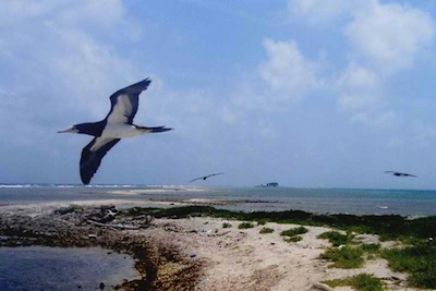 Other than anticipating/dreading the rest of the passage, our time in the Vivorillos Cays was better than anything we’ve done yet. Grand Vivorillo Cay is the only cay big enough for anything other than the 8 palm trees lining the sand spit where the fisherman have a fish camp. The only other piece of land than sand spits, is the bird rookery mangrove island at the north end of the reef, which supposedly is much like being in the Galapagos, but only birds, no turtles or other wildlife. During our exploration of “bird cay” we were treated to watching a baby booby bird hatch, but less than delighted at the overhead bombardment from hundreds of frigatebirds. After the cow crap episode last spring I’m beginning to wonder if I’m not starting a springtime tradition with different critters – I’d be perfectly happy to forego that tradition! It smells bad!!! I wasn’t the only one so favored though, I think 6 of the 8 of us were treated to the same crap …. so to speak! 🙂 🙂 🙂