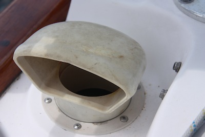 In addition, we examined all our dorades. Luckily, we remove the dorades and secure the openings with screw caps when we leave. The only exceptions are the two dorades over the main cabin – both of which have secure screens in place and one has a solar fan sucking air out while the one across the cabin lets air in (with the screen). Cross ventilation! 🙂