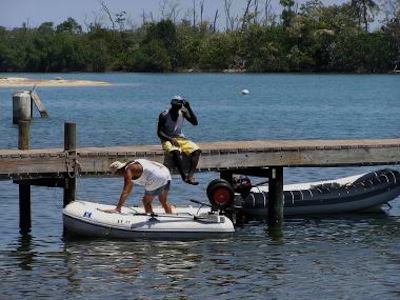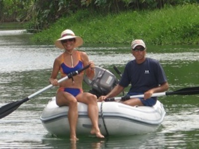 Oars can be used for many other things aboard – especially when you’re exploring places that have a ban on outboard – or any – motors. Shroud Cay in the Exumas Land and Sea Park comes to mind, as does many of the rivers in central america. Here we explore a freshwater creek on the mainland of the San Blas Islands, Panama… A dinghy drift … which is a floating cocktail party with many dinghies tied together is another prime use for a few strategically placed oars guiding the dinghies while the sun sets over the palm trees. Aaahhhhhh….. life is good!