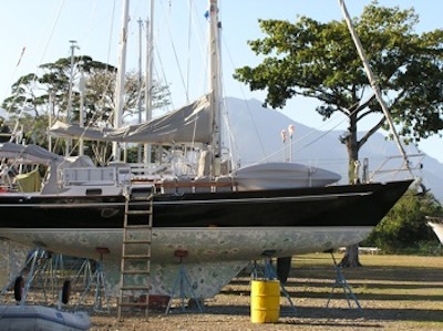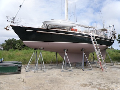 Thanks for sharing! One of your photos shows your boat on the hard with headsail furled and main on the boom. Maybe a bit risky …could blow the boat off its cradle if it came loose? That would wake you up during the night?