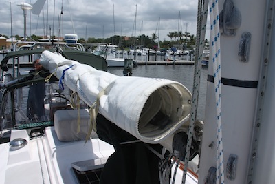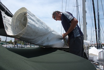 Now that the main sail is safely stored below we can finish all our last minute preparations to l leave the boat for hurricane season.